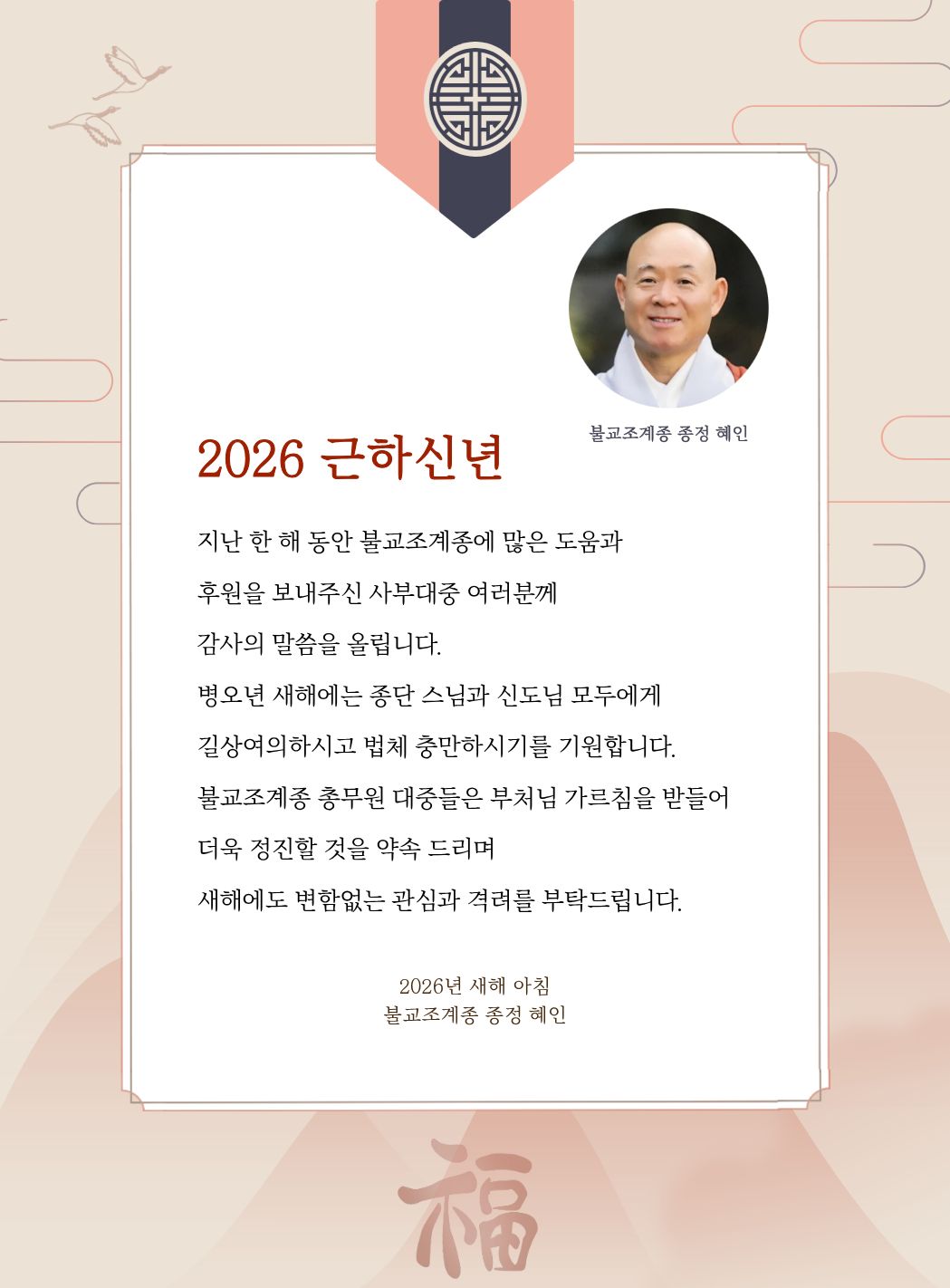 ºÒ±³Á¶°èÁ¾ Á¾Á¤ ÇýÀνº´Ô 2026³â »õÇØ Àλ縻