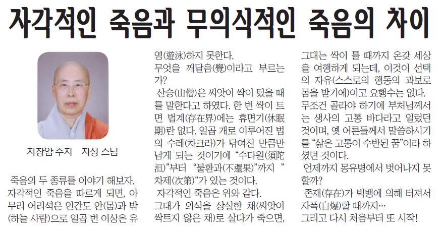 Á¶°èÁ¾»ïȺұ³½Å¹® \"ÀÚ°¢ÀûÀÎ Á×À½°ú ¹«ÀǽÄÀûÀÎ Á×À½ÀÇ Â÷ÀÌ\"