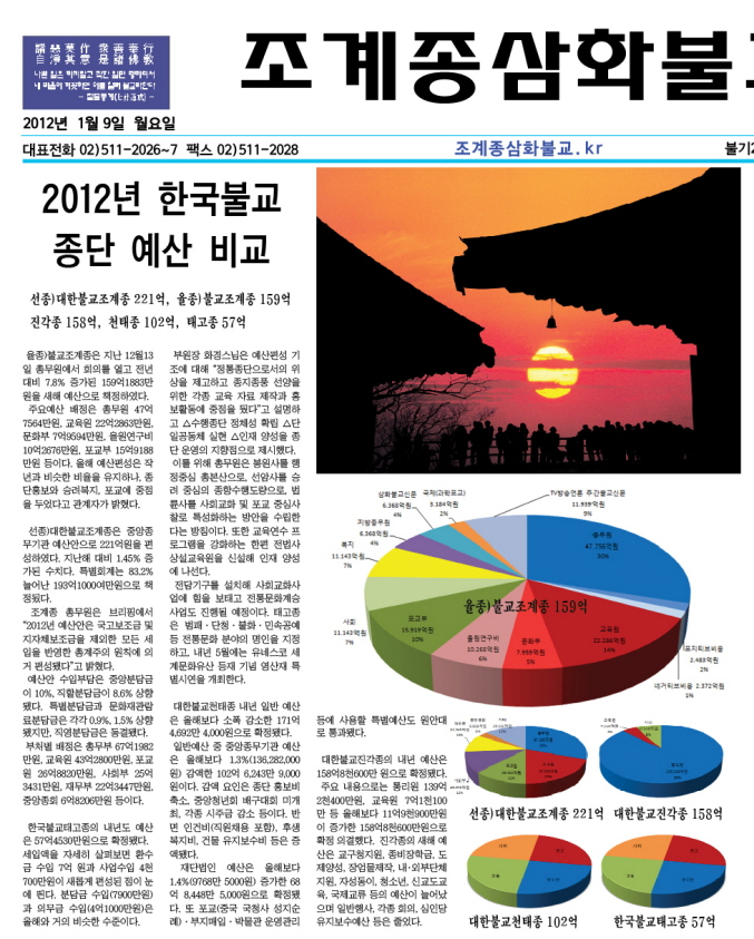 °üÀ½Á¾ Áß¾ÓÁ¾È¸(ÀÇÀå ¹ý¸í ½º´Ô)´Â 1¿ù9ÀÏ 49Â÷ Á¤±âÁ¾È¸¸¦ ¿¾î 2012³â ¿¹»ê ¹× ÁÖ¿ä»ç¾÷À» È®Á¤Çß´Ù. °üÀ½Á¾Àº Áß¾ÓÁ¾È¸ÀÇ Àǰῡ µû¶ó 2012³â °³»êÁ¶ ÅÂÇãÁ¶»ç 108Áֳ⠱â³ä Çмú´ëȸ °³ÃÖ¸¦ ºñ·ÔÇØ ¿Ü±¹ÀÎ ÅÛÇýºÅ×ÀÌ ÁßÁ¡À°¼º, ¼ºÁ÷ÀÚ ¿¬¼ö±³À°, »çÂû Àçµî·Ï µîÀÇ »ç¾÷À» ÃßÁøÇÑ´Ù.